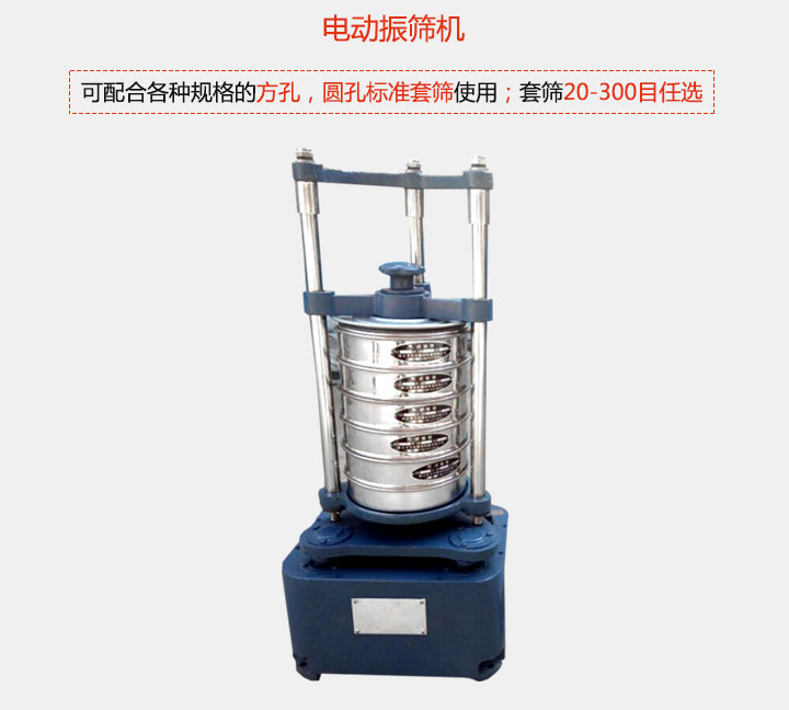 電動振篩機是實驗室中比較常用的篩分設備,該機可以配合各種規格的方孔,圓孔標準套篩進行使用,套篩從20-300目任選。